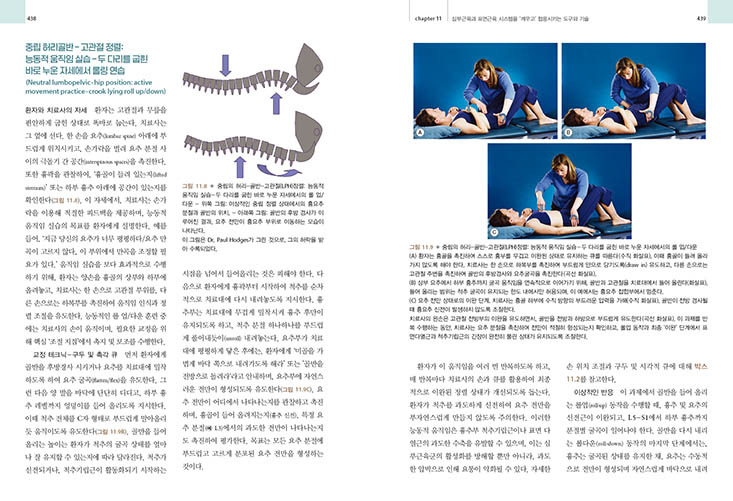 독자는 평가, 감별 진단, 임상적 추론, 수동적 및 역동적인 치료 선택 및 진행의 체계적인 과정을 거치게 된다. 그러나 임상적 관점에서 이 책은 단순한 ‘방법’을 제시하는 책 그 이상이다. 허리골반-고관절 복합체 손상 및 통증으로 인한 장애와 관련된 관련 요인들을 평가하고 관리하는 방법을 명확하게 제시하고 있지만, 이는 ‘통합 시스템 모델’과 관련 ‘통합 기능 모델’에서 분명히 드러나는 더 광범위한 전체론적 생물심리사회적 실천 철학을 통해 훌륭하게 구현되었다. 물리치료사는 환자가 이해하고, 책임감을 갖고, 자기 관리를 배우도록 힘을 실어주는 교사, 촉진자, 코치로 묘사된다. 평가 및 관리 절차는 연구 기반과 함께 생물의학적 관점에서 제시되며, 인식, 이해, 긍정적 감정, 학습, 그리고 신경가소성을 향상시키는 치료 환경의 중요성을 강조하는 심리사회적 고려 사항들을 고려한다. 학습의 신경과학은 암묵적으로 학습된(무의식적인) 신념, 자세, 움직임, 그리고 운동 조절은 변화시키기 어려울 수 있음을 시사한다. 이러한 목적을 위해, 환자의 관점을 바탕으로 피질 재조직(즉, 학습)을 촉진하는 명확한 전략을 제시하고, 심부 근육을 활성화하며, 심부 근육계의 공동 수축을 촉진하고, 심부 근육계와 표층 근육계를 통합한다. 환자 사례를 바탕으로 ‘이완, 정렬, 연결, 이동’ 전략과 절차를 제시하며, 지지 자세에서 직립 자세, 그리고 의미 있는 기능까지 신경망의 학습과 강화 과정을 보여준다. 평가 및 중재가 어떻게 제공되는지(기술적, 교육적, 행동적, 인본주의적) 비디오 클립을 통해 설명하고 시연하는데 쏟은 노력은 Diane과 LJ의 실제 진료 방식을 독자에게 생생하게 보여주는 인상적인 사례이다.